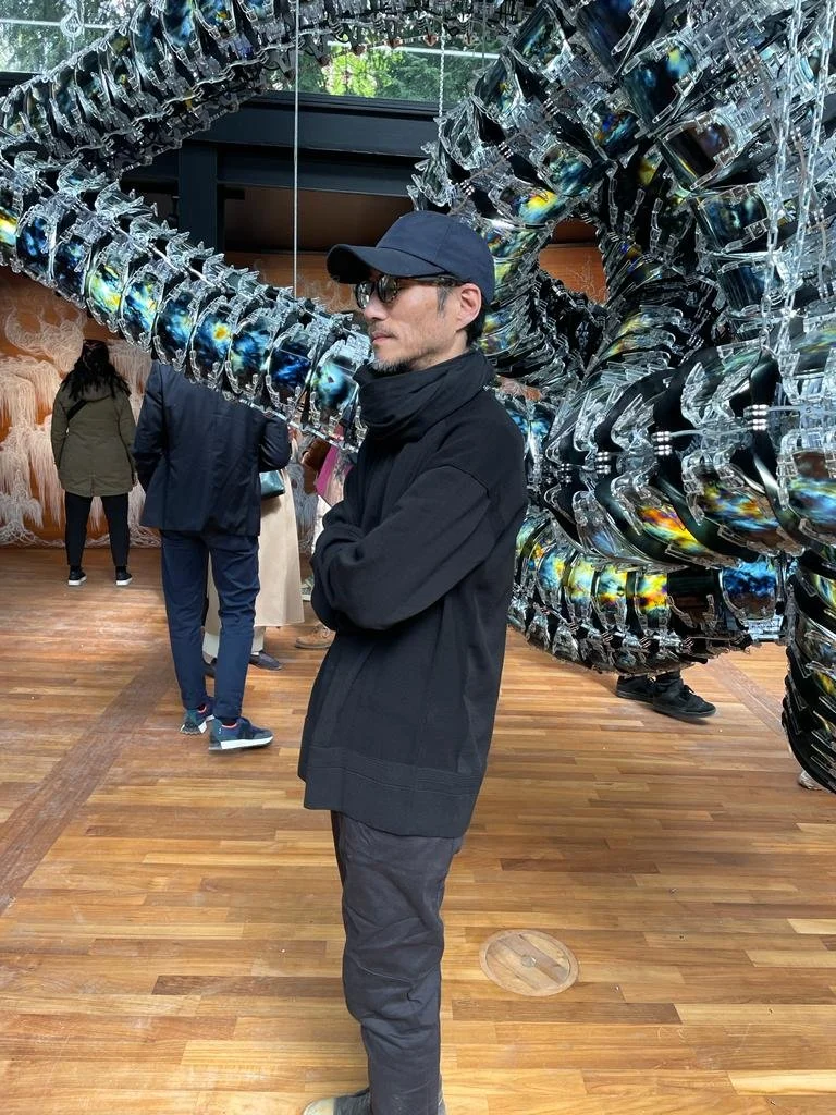 The Korean pavilion “Gyre,” featuring six works by artist Kim Yun-chul features the fluidity of mechanical motion, with its main work an undulating 50 meter spine-like structure embedded with polymer cells, changing colors with its movements.